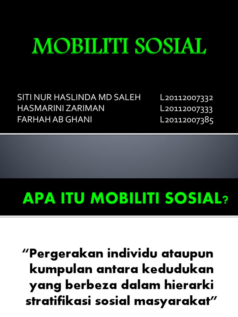 Pengertian Mobiliti Sosial : Kimball young dan raymond w.